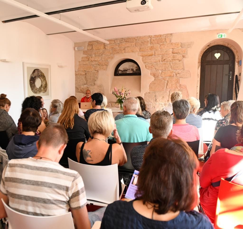Gurudev Bhaneshwaranand ist ein hellsichtiger spiritueller Lehrer, der heilsame Transformation und energetische Blockaden in allen Schichten vor der Seele effizient und nachhaltig löst. Chakrenreinigungen und persönliche Gespräche werden an einem Stand angeboten. Im Workshop gibt es eine geführte Meditation und entgiftende Atemübungen.